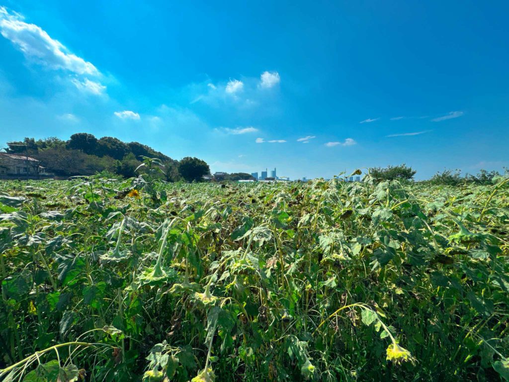 緑肥用ヒマワリが咲き終わりました。(2025年9月17日13時頃に撮影)