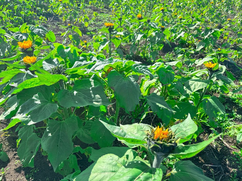 背丈は低いですが、開花いたしました。まだ蕾(つぼみ)の状態の向日葵(ヒマワリ)もありますので、これから開花する向日葵(ヒマワリ)もあるかと思います。